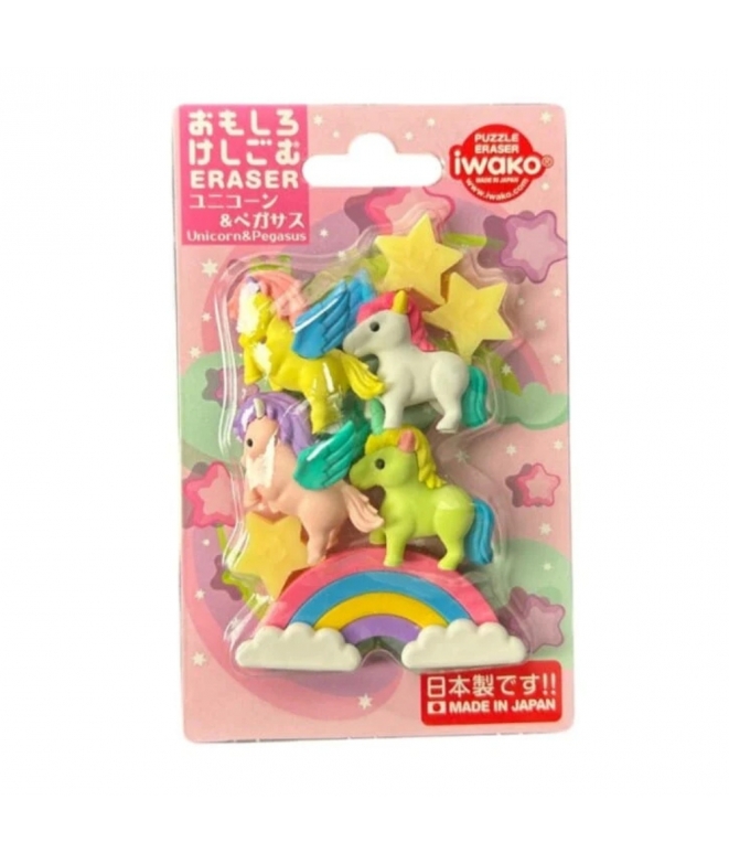 Découvrez les célèbres et adorables gommes japonaises IWAKO, un best seller indémodable. Elles sont très efficaces pour effacer mais sont aussi des gommes puzzles qui se montent et se démontent. Ce set se compose de 8 gommes, inspirées de l'univers magique des licornes. Made in Japan. À partir de 3 ans.
