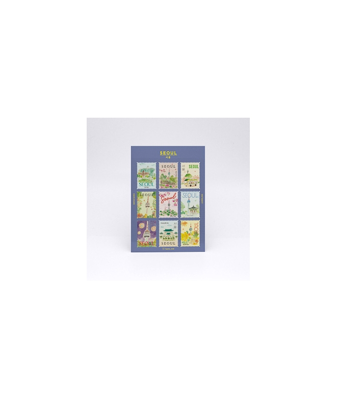 Un charmant set de 9 stickers en forme de timbre poste représentant des monuments célèbres de la ville de Seoul en Corée. A coller partout sans modération. Fabriqué en Corée. Chaque sticker mesure 2.8cm x 3.8cm